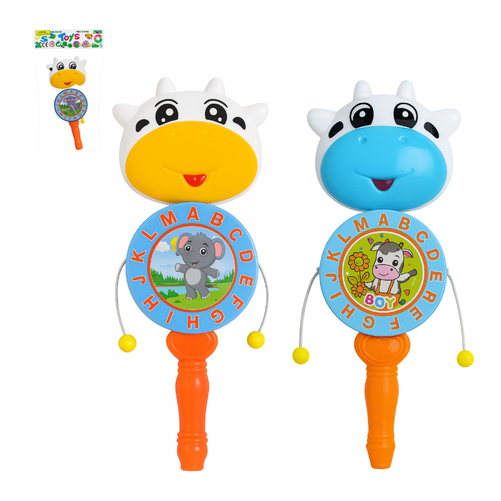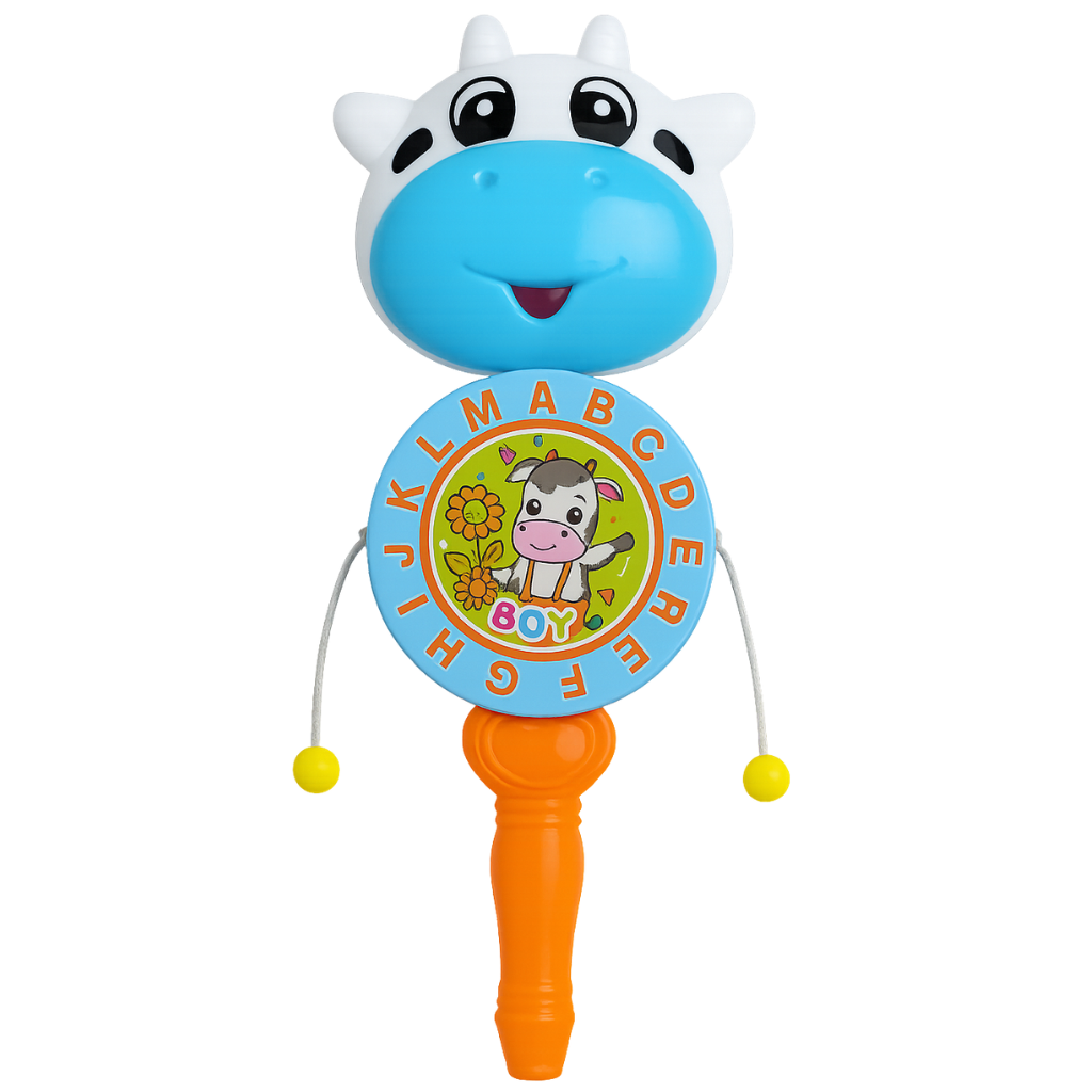 Es un juguete musical ideal para la estimulación temprana de bebés y niños pequeños. Con un diseño divertido en forma de vaca y un tambor central, permite emitir sonidos al agitarlo o golpear suavemente, ayudando a desarrollar el sentido del ritmo, la coordinación y la curiosidad a través del juego.