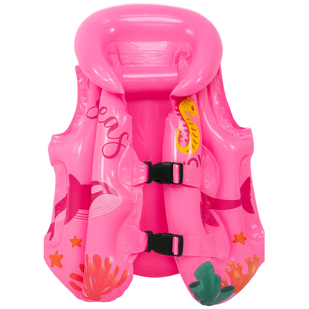 Es un accesorio inflable diseñado para brindar seguridad y confianza a los niños durante sus actividades acuáticas. Su diseño en color azul con ilustraciones marinas lo convierte en una opción atractiva y divertida para los más pequeños. Fabricado en vinilo resistente, cuenta con un sistema de doble hebilla ajustable que garantiza un ajuste firme y cómodo.
