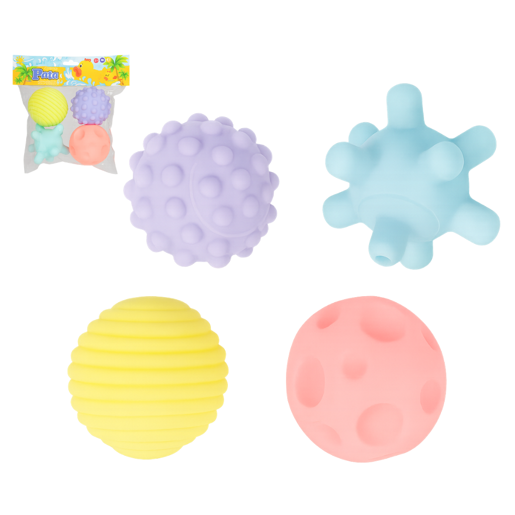 Es un juguete ideal para la estimulación temprana de bebés y niños pequeños. Incluye cuatro pelotas con diferentes formas y texturas, diseñadas para emitir sonido al presionarlas, ayudando a desarrollar los sentidos, la coordinación y la exploración sensorial a través del juego.
