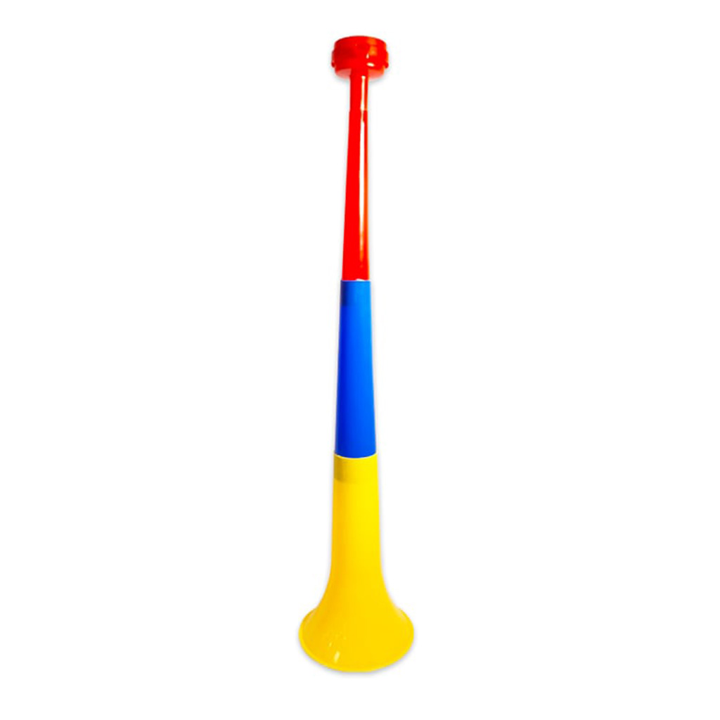 Un accesorio perfecto para alentar en partidos, celebraciones patrióticas, carnavales o cualquier evento deportivo. Con un diseño en los colores de la bandera de Colombia (amarillo, azul y rojo), esta corneta está fabricada en plástico resistente y ligero, lo que facilita su transporte y uso en cualquier ocasión.