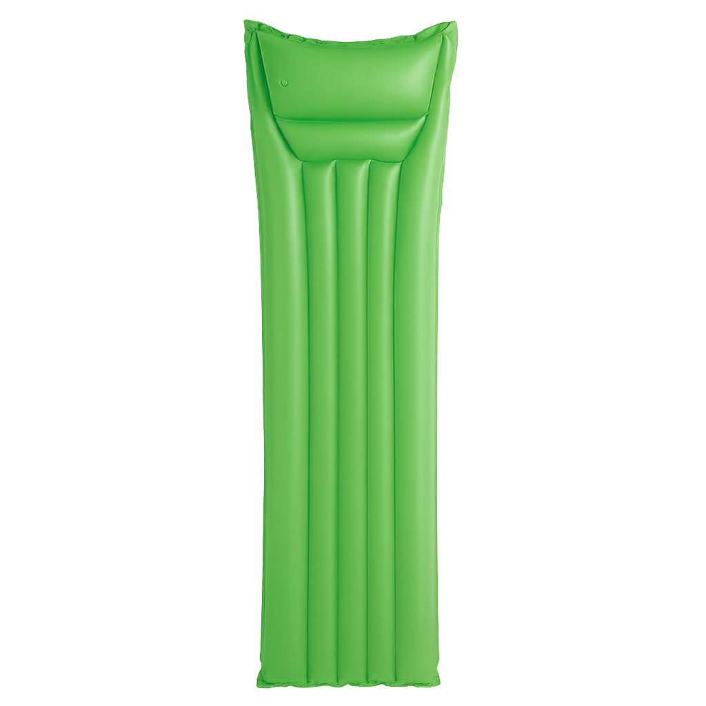 Su diseño alargado con respaldo tipo almohada integrado proporciona soporte adicional para la cabeza, haciendo más placenteros los momentos en la piscina o playa. Fabricado en vinilo resistente y de fácil inflado, es ligero, portátil y práctico para llevar a cualquier lugar.