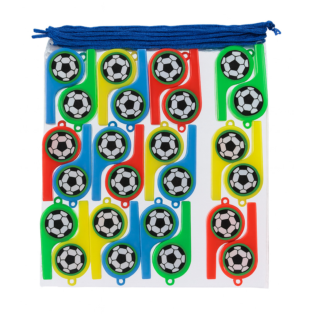 Es un accesorio divertido y seguro, perfecto para celebraciones, fiestas infantiles y piñatas. Su diseño colorido con estampado de balón de fútbol lo convierte en el complemento ideal para animar cualquier evento. Gracias a la cuerda incluida, los niños pueden colgárselo y usarlo cómodamente sin riesgo de perderlo.