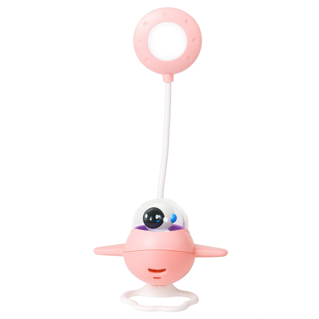 Es una luz infantil encantadora y funcional, diseñada en forma de avioncito con colores suaves y detalles tiernos. Su aro de luz LED proporciona una iluminación cómoda, ideal para lectura, tareas escolares o acompañar a los niños durante la noche.