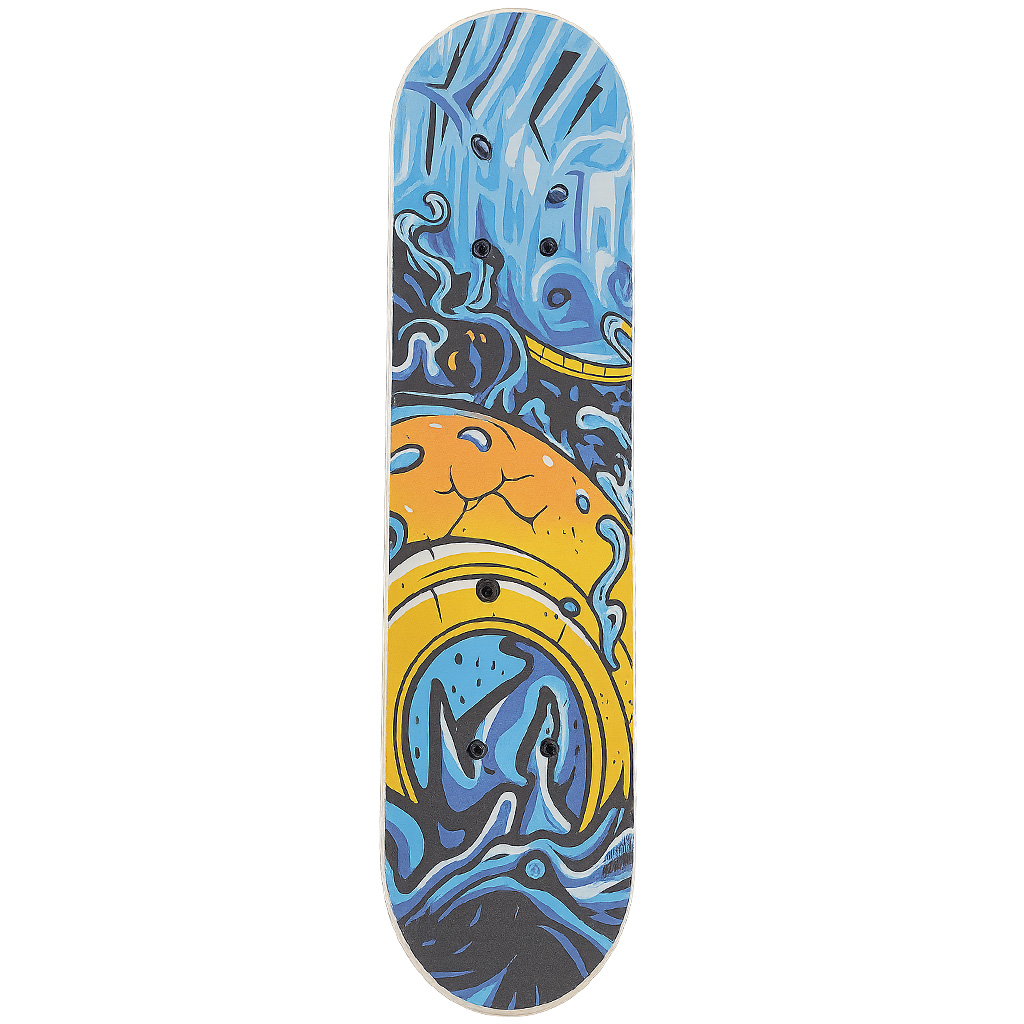 Es una patineta clásica con superficie decorada en coloridos diseños, ideal para principiantes y jóvenes aficionados al skate. Su estructura está fabricada en materiales resistentes que ofrecen estabilidad, tracción y durabilidad, garantizando una experiencia de deslizamiento segura y divertida.