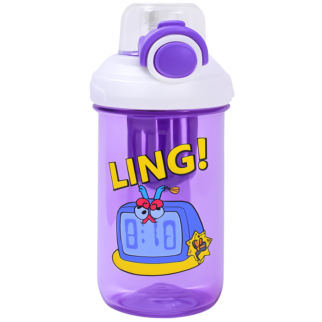 Es una botella práctica y divertida, ideal para niños y jóvenes que disfrutan llevar sus bebidas favoritas a cualquier lugar. Su diseño colorido con motivos animados y tapa de seguridad con botón de apertura rápida lo convierte en un accesorio funcional y atractivo.